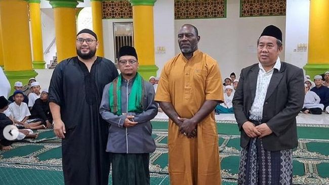 Jacksen F Tiago terlihat lancar mengucapkan dua kalimat syahadat dibimbing Ustaz H Nasikhin. Hugo Samir turut mengunggah momen Jacksen menjadi mualaf ini.