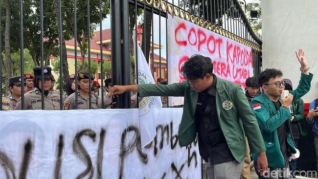 Berdasarkan pantauan detikSumut, Senin (1/9/2025), massa aksi mulai memadati lokasi sekira pukul 14.50 WIB. Ada sekitar 50 mahasiswa yang ikut dalam aksi itu.