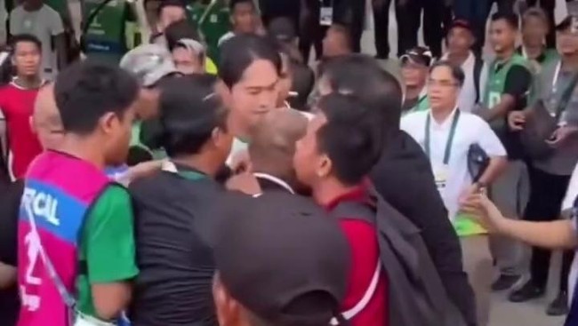 Dalam video yang dilihat, Selasa (25/11/2025), pemain PSMS Reky Fariz terlihat didorong pria memakai rompi merah jambu yang diduga ofisial Sumsel United. Kim yang terlihat di dekat peristiwa itu terlihat mencoba menangkap pria berompi itu.