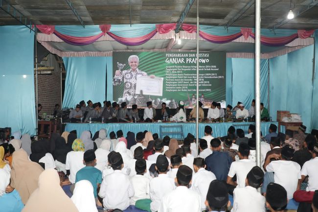 Relawan Santri Dukung Ganjar (SDG) bersama 500 santri dan ulama Kabupaten Musi Rawas, Sumatera Selatan (Sumsel) menggelar 'Gema Selawat dan Doa Bersama untuk Negeri' di Pondok Pesantren Hidayatut Thullab, Desa Leban Jaya, Tuah Negeri, Kabupaten Musi Rawas dengan intensi mencari figur pemimpin tingkat nasional. Mereka menilai hanya Ganjar yang menonjol dan fokus mendorong moderasi beragama.
