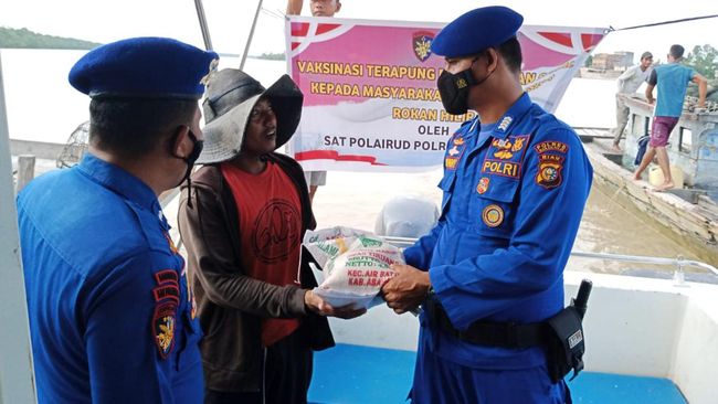 Polres Rokan Hilir (Rohil), Riau menggelar vaksinasi dan bantuan sosial ke daerah pesisir. Vaksinasi digelar di wilayah pesisir karena selama ini sulit diakses oleh petugas.