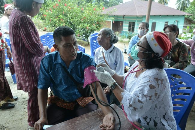 Diketahui, kegiatan ini berjalan dengan baik. 100 warga yang hadir mengikuti pengobatan gratis di perayaan diakonia natal ini.