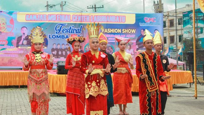 Relawan yang tergabung dalam Ganjar Milenial Center (GMC) menggelar lomba fashion show dan festival tari adat Sumatera Utara di pelataran Home Smart, Kabupaten Labuhan Batu. Kegiatan ini bertujuan untuk meningkatkan kesadaran diri para kaum milenial agar senantiasa menjaga dan merawat budaya bangsa, khususnya budaya lokal di setiap daerahnya.