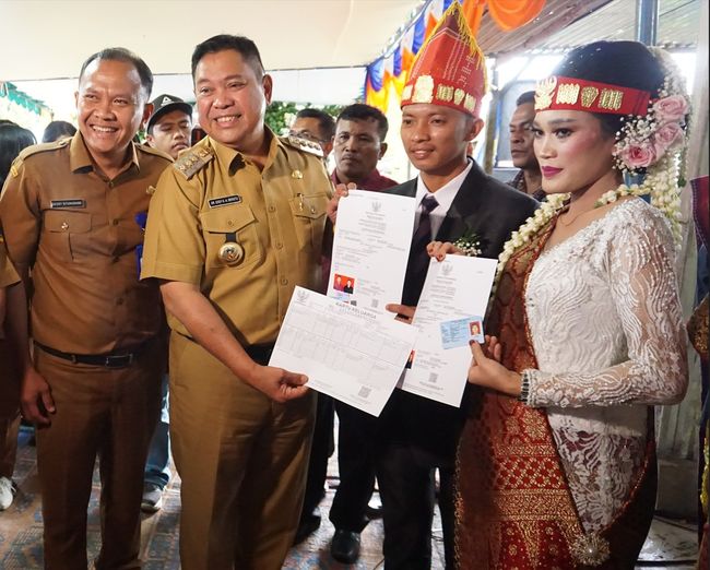 "Secara bersamaan, kedua orangtua pengantin juga ikut mendapat Kartu Keluarga (KK) karena putra-putrinya telah membantu Kartu Keluarga (KK) yang baru sebagai suami-isteri," sambung Deddy.