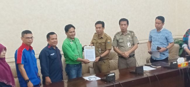 Audensi para buruh ini digelar pada Selasa pagi (14/3/2023) di gedung DPRD Provinsi Jambi. Puluhan buruh yang tergabung beberapa organisasi buruh seperti KSPI, SPSI, SPTI menolak RUU cipta kerja nomor 2 tahun 2022.