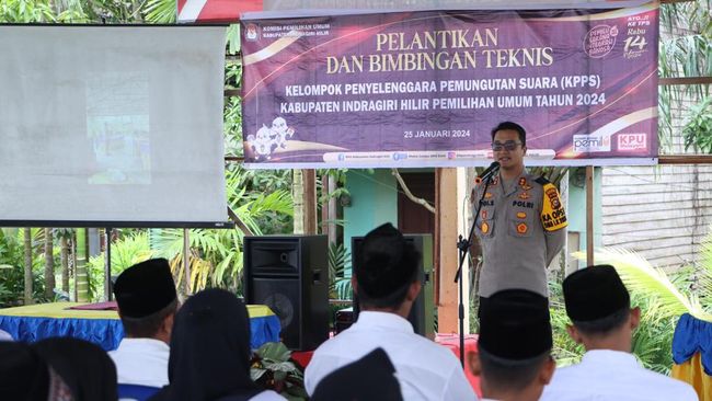 Kapolres Inhil AKBP Budi Setiawan memberikan bimbingan teknis (Bimtek) bagi Kelompok Penyelenggara Pemungutan Suara (KPPS) di Kelurahan Sungai Salak. Budi mengingatkan terkait medan tugas yang harus dipahami.