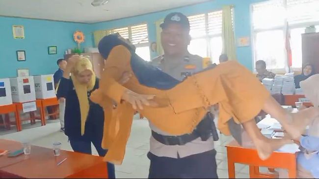 Ralon langsung gerak cepat membantu Syamsiah berdiri dan menuntunnya ke lokasi pemilihan. Setelah mencoblos, Aipda Ralon menggendong Syamsiah dan mengantarnya ke mobil untuk diantarkan pulang.