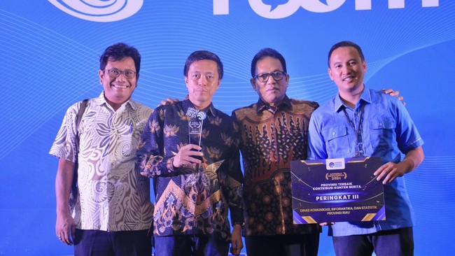 Media Center Riau berhasil meraih predikat terbaik ketiga kategori Provinsi Terbaik Kontribusi Konten Berita. Penghargaan diserahkan Wakil Menteri Komunikasi dan Informatika, Nezar Patria kepada Kepala Diskominfotik Riau, Ikhwan Ridwan malam tadi di Trans Convention Center.