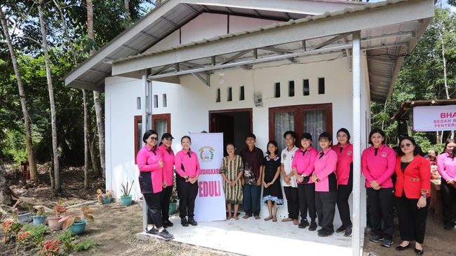 Ketua Umum Bhayangkari Juliati Sigit Prabowo membedah rumah dan gereja di Kabupaten Nias Utara, Sumatera Utara. Kegiatannya itu dalam rangka menyambut Hari Kesatuan Gerak Bhayangkari (HKGB) ke-72.