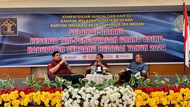 "Tujuan diadakannya acara Rapat Tim Pengawasan Orang Asing (Timpora) Kabupaten Serdang Bedagai Tahun Anggaran 2024 agar Imigrasi bersama dengan seluruh instansi pemerintah yang berada di wilayah Kabupaten Serdang Bedagai dapat lebih meningkatkan kolaborasi dan sinergitas dalam pengawasan keberadaan orang asing untuk menciptakan keharmonisan dan kedamaian," ungkap Kepala Kantor Imigrasi Kelas I Khusus TPI Medan Wahyu Hidayat, Jumat (12/7/2024).