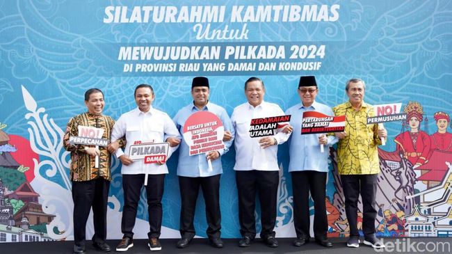 Kapolda Riau Irjen Mohammad Iqbal bareng jajaran TNI, KPU dan Bawaslu mengumpulkan 3 pasangan calon (Paslon) Pemilihan Gubernur Riau. Ketiga pasangan dikumpulkan dalam Silaturahmi Kamtibmas untuk Mewujudkan Pilkada 2024 di Provinsi Riau yang Damai dan Kondusif.