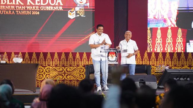 Pasangan Calon Gubernur-Wakil Gubernur Sumatera Utara nomor urut 1 Bobby Nasution-Surya kembali unggul dalam debat publik kedua Pasangan Calon Gubernur-Wakil Gubernur Sumatera Utara yang diselenggarakan KPU Sumut di Hotel Santika Dyandra , Medan, Rabu (6/11/2024) malam.
