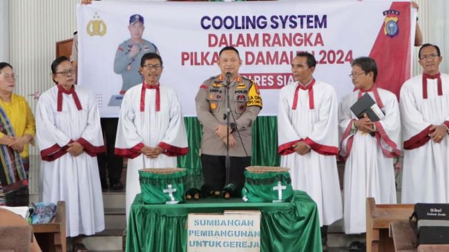 Polres Siak melakukan sosialisasi dan cooling system Pilkada damai, sejuk, aman dan beradab. Kali ini sosialisasi dilakukan di Gereja HKBP Zamrud, Dayun.