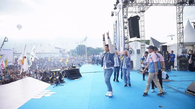 Pasangan calon Gubernur dan Wakil Gubernur Sumatera Utara nomor urut 1 Bobby Nasution-Surya menggelar kampanye akbar. Massa yang datang ke lokasi kampanye ramaikan kampanye mengedepankan politik riang gembira.
