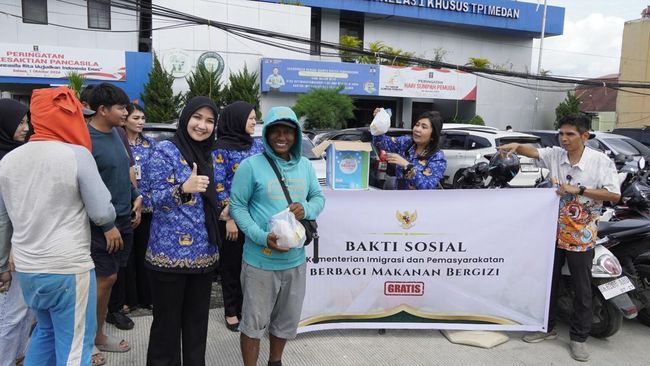 Kantor Imigrasi Kelas I Khusus TPI Medan menggelar bakti sosial dengan berbagi makanan bergizi gratis kepada masyarakat Kota Medan. Bakti sosial ini sebagai bentuk kepedulian ke masyarakat.