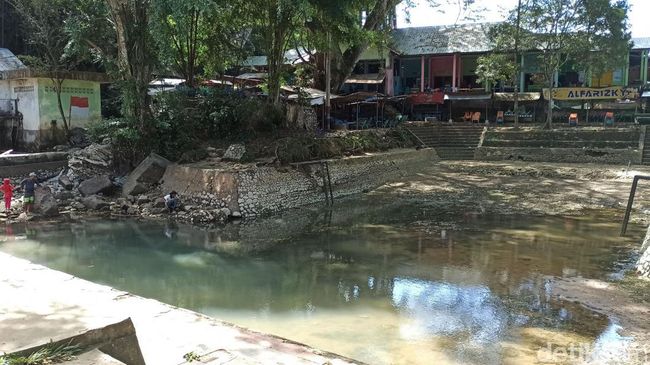 Pemandangan tersebut kontras dengan keadaan sebulan lalu. Saat itu, tempat itu masih ramai dikunjungi wisatawan untuk mandi bareng keluarga.