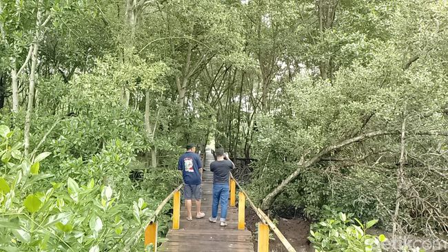 Saat anda mulai menyusuri jembatan kayu di dalam hutan mangrove. Mata akan dimanjakan dengan suasana teduh dengan menghirup udara segar yang dihasilkan oleh pohon mangrove.