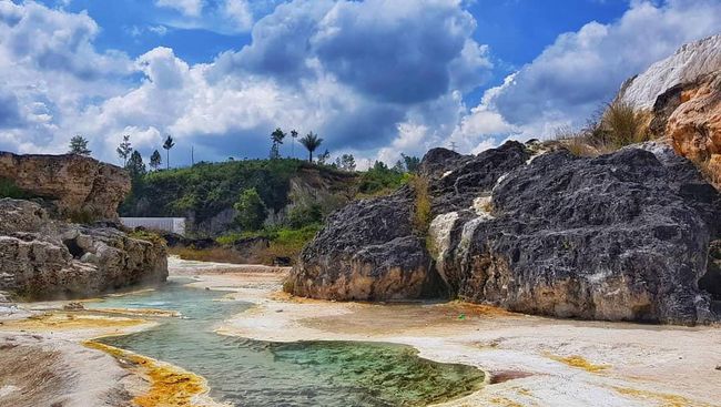 Tak hanya berenang, pengunjung juga bisa menyaksikan sumber mata air panas dengan mendaki naik ke bukit kapur. Bukit kapur ada karena belerang-belerang yang terkandung dalam air mengendap menutupi permukaan tanah.