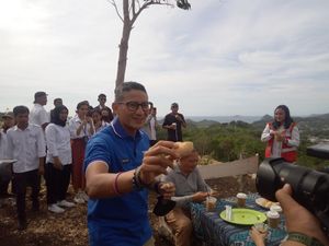Menteri Pariwisata dan Ekonomi Kreatif Sandiaga Salahuddin Uno terkesan dengan cita rasa Kompiang, roti khas Manggarai