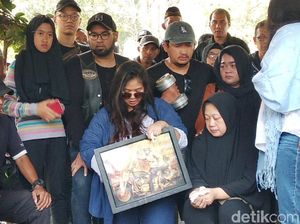 Agung Hercules dimakamkan pada hari Jumat (2/8) di TPU Cikutra, Bandung. Isak tangis keluarga dan sahabat pecah, serta adapula barbel yang menemaninya.