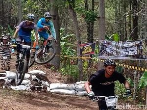 Pengunjung wisata air terjun Sedudo, Nganjuk mengalami lonjakan pada Sabtu (7/4). Meski demikian, arus lalu lintas terpantau ramai lancar.