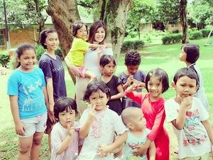 Tunangan pebasket Denny Sumargo, Dita Soedarjo, nggak cuma cantik dan tajir, tapi juga sosok yang keibuan. Lihat fotonya bareng anak-anak yuk.