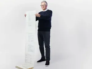 Sebagai founder Microsoft, Bill Gates membagikan tampilan source code original. Terlihat tumpukan kertas tebal dan panjangan yang dia pamerkan.