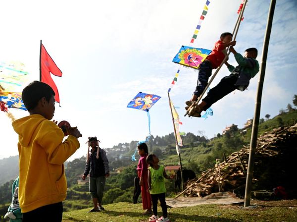 Serunya Anak-anak Nepal Bermain Ayunan Bambu Rayakan Festival Dashain