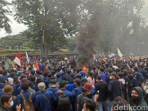 Mahasiswa dari segala penjuru berkerumun melakukan aksi demo. Massa aksi mulai melakukan aksi bakar ban.