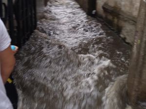 Tanggul di RW 06 Jati Padang, Jakarta Selatan, kemarin jebol dan mengakibatkan banjir. Petugas dari Dinas SDA berjibaku memperbaiki tanggul yang jebol.