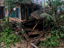 Sebanyak 8 rumah terbawa hanyut banjir yang menerjang Desa Cibitung, Kecamatan Cibitung, Kabupaten Sukabumi.