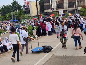 Aksi bela Palestina di Depok, Jawa Barat, telah selesai. Masyarakat yang menghadiri aksi tersebut mulai meninggalkan lokasi aksi.