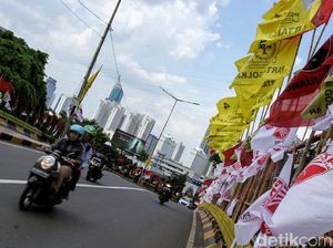 Satpol PP Tertibkan Bendera Parpol di Flyover Ciputat