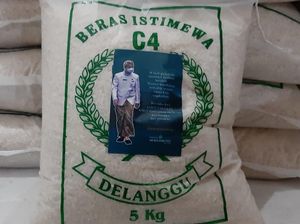 Wali Kota Solo Gibran Rakabuming Raka bagi-bagi beras kepada masyarakat yang membutuhkan. Di kemasan beras tersebut ada stiker foto Gibran.