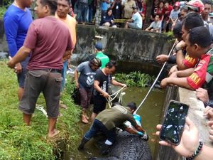 Buaya seberat 600 kg di Minahasa, Sulawesi Utara (Sulut) bernama Mery, memakan seorang perempuan, Deasy Tuwo (44). Evakuasi berjalan menegangkan.
