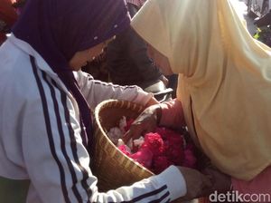 Harga bunga mawar tabur ukuran keranjang kecil yang biasanya Rp 5 ribu kini naik menjadi Rp 35 ribu.