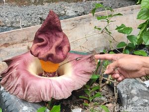 Bunga bangkai ditemukan tumbuh di belakang rumah warga di Desa Buko, Kecamatan Wedung, Demak. Bunga disebut mengeluarkan bau tak sedap pada malam hari.