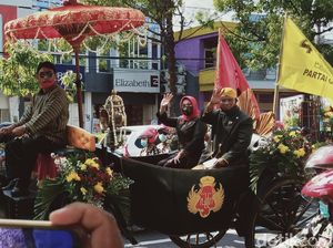Bupati petahana Klaten Sri Mulyani dan wakilnya Yoga Hardaya (Mulyo) resmi mendaftar ke KPU. Keduanya mendaftar menggunakan kereta kencana berlogo Kraton Yogya.