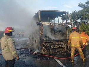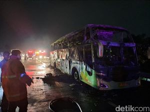 Kronologi Bus Gunung Harta Terbakar di Tol Jomo, Sempat Terjadi Ledakan
