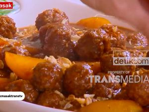 Semur bola-bola daging dengan kuah asam manis enak jadi lauk nasi putih. Bola-bolanya kenyal gurih semakin enak dipadukan dengan saus tomat yang segar.
