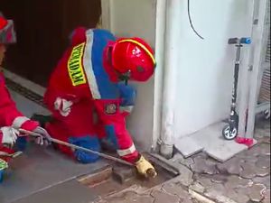 Sanca Besar Masuk Selokan SDN Bogor Bikin Panik, Damkar Evakuasi