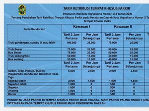 Dinas Perhubungan Kota Jogja meminta agar tarif parkir resmi di Jogja menyesuaikan dengan aturan yang berlaku. Ini ketentuannya sesuai peraturan daerah (perda).