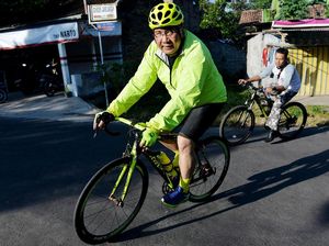 Mendes PDTT Eko Sandjojo asyik bersepdeda bersama warga di kawasan Seyegan, Sleman, Yogyakarta, Minggu (16/7). Berikut foto-fotonya.