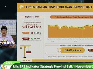Nilai ekspor Bali Maret 2025 mencapai US$53,66 juta, naik 2,76% bulanan, namun turun 3,01% tahunan. Impor melonjak 31%, surplus perdagangan US$40,59 juta.