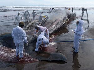 Potret Evakuasi Paus Sperma yang Terdampar di Jembrana Bali
