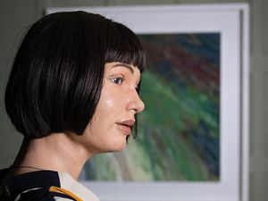 Robot humanoid AI akan memamerkan serangkaian hasil lukisan berupa potret dirinya sendiri yang dia buat dengan melihat ke cermin.