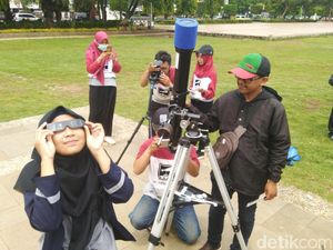Fenomena langka ini pun disambut warga di berbagai penjuru Nusantara. Ada yang penasaran melihat langsung, ada juga yang menggelar salat gerhana.