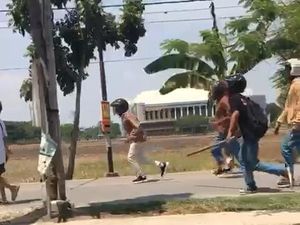 Video tawuran pelajar di GOR Dabonsia Bojonegoro viral di media sosial. Kericuhan itu diduga dipicu saling ejek saat pertandingan futsal antarpelajar.