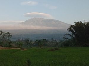 Untuk ketiga kalinya secara berturut-turut warga Magetan disuguhi pemandangan indah awan bertopi. Awan bertopi itu muncul di puncak Gunung Lawu.