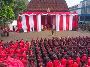 PDIP menggelar upacara peringatan Hari Lahir Pancasila di Lenteng Agung, Jakarta Selatan. Sejumlah elite hingga kader PDIP hadir dalam upacara tersebut.